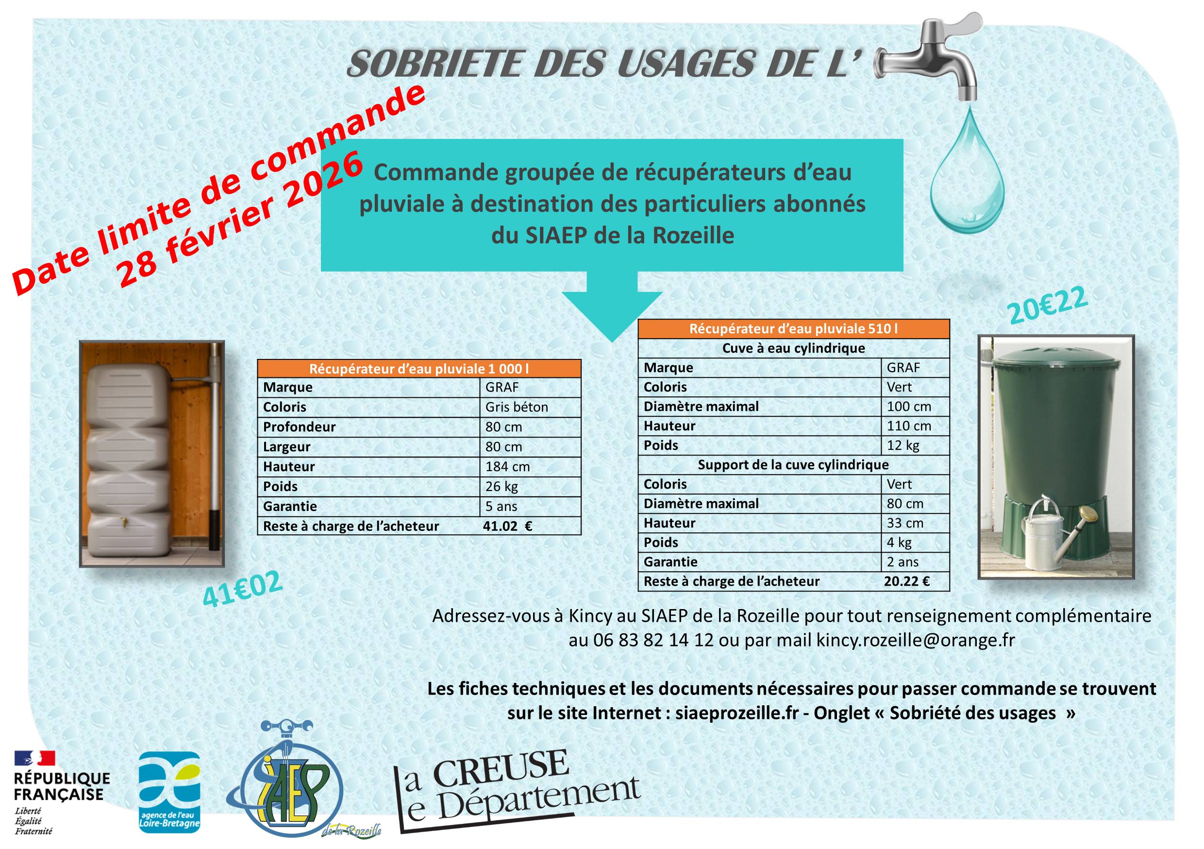 Opération Récupérateur d’eau de pluie et mousseur de robinet