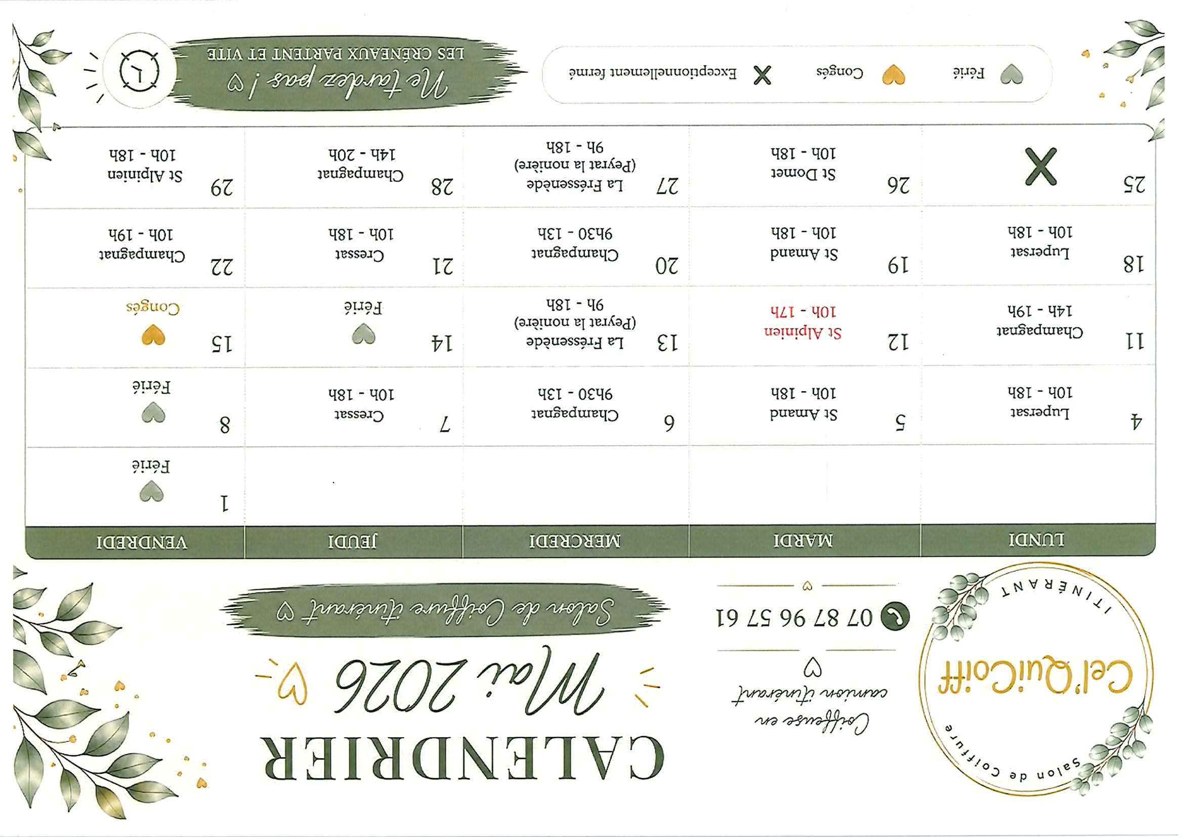 planning coiffeuse